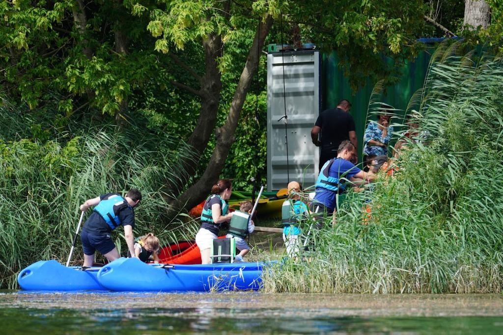 Na brehu dostanú rychlokurz geniality. Zistíme ako dlho chcú byť na vode, či túžia po kajaku, alebo kánoe a aké majú skúsenosti. Následne im vysvetlíme ako si vybrať a nasadiť vestu, držať pádlo a sedieť v lodi.